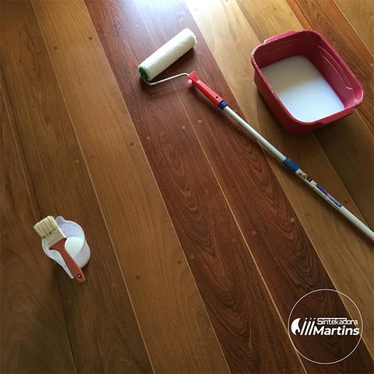 * Aplicação de Sinteco U.F, Verniz Base de Água e Verniz P.U Alto Brilho.